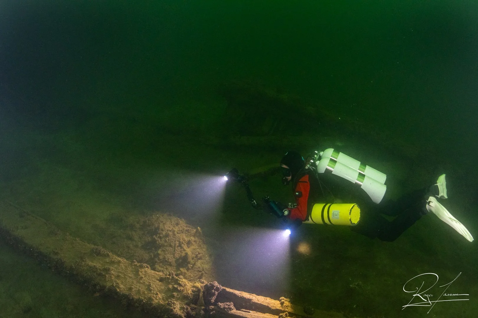 The first test run was performed by myself with diver support provided by Tom Crisp and Jason Cook, and with surface support from Guy Shockey. It lasted 20 minutes and covered the wreck site of the Robert Kerr in the water (13°C) of British Columbia, Canada, and generated 5000 pictures which successfully produced a low-resolution 3D model.